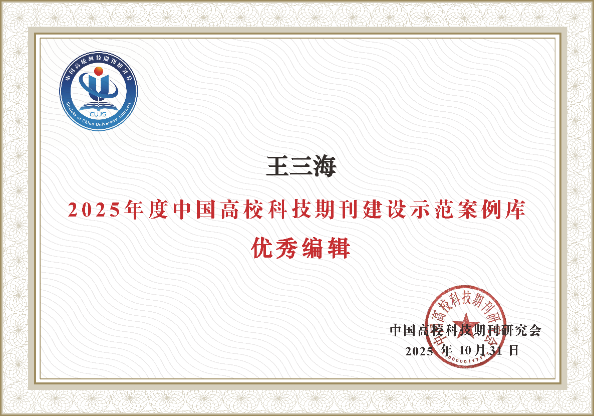2025年11月6日至9日,中国高校科技期刊研究会第29次年会在陕西西安隆重举行。会议公布了“2025年度中国高校科技期刊建设示范案例库·编辑团队及编辑个人案例”的评选结果,《陶瓷学报》编辑部主任王三海博士荣获“2025 年度中国高校科技期刊建设示范案例库·优秀编辑”。