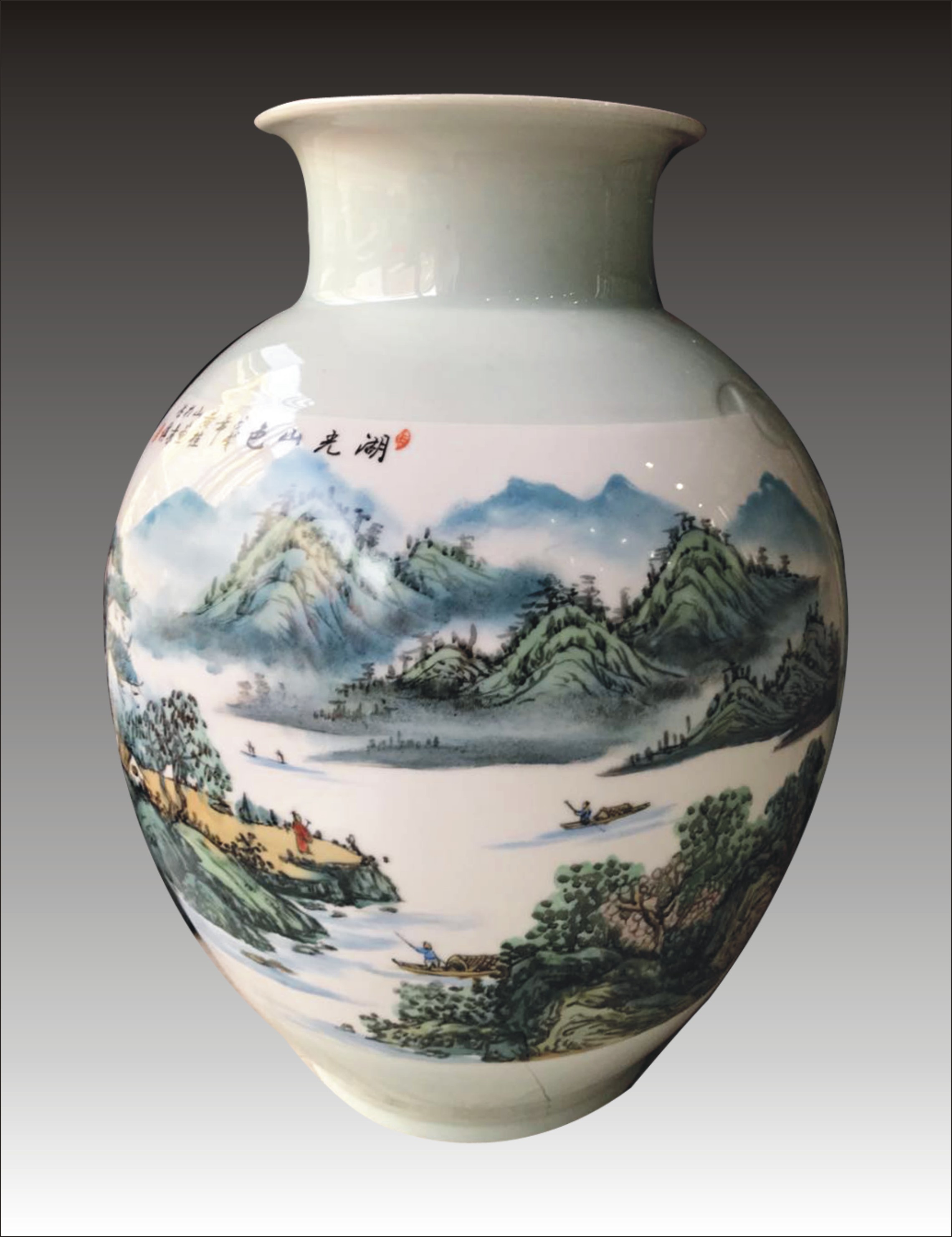 200件青花山水《佳气山川秀》直筒瓶被广东省博物馆收藏。