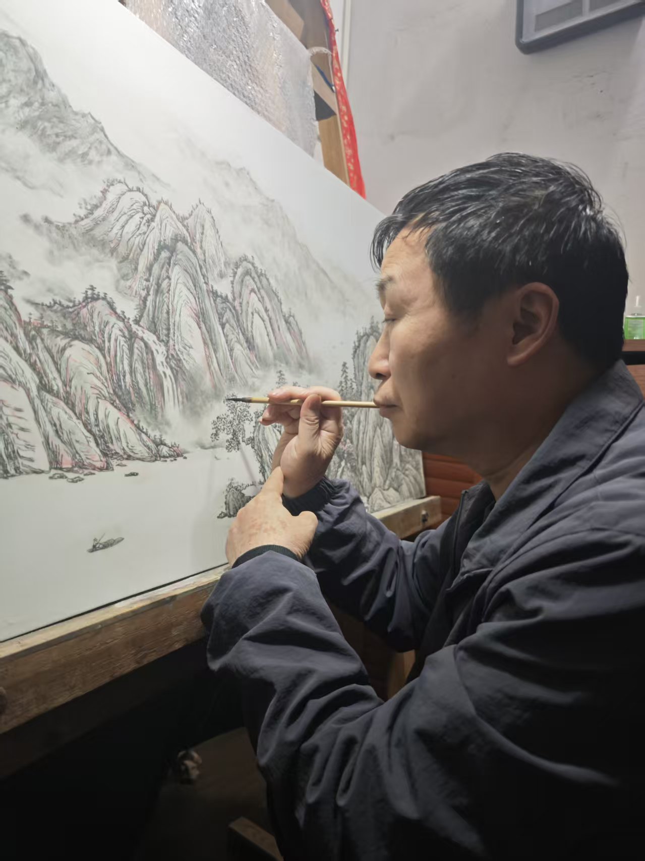 作品《秋山渔隐图》瓷板画被广东省博物馆收藏。
